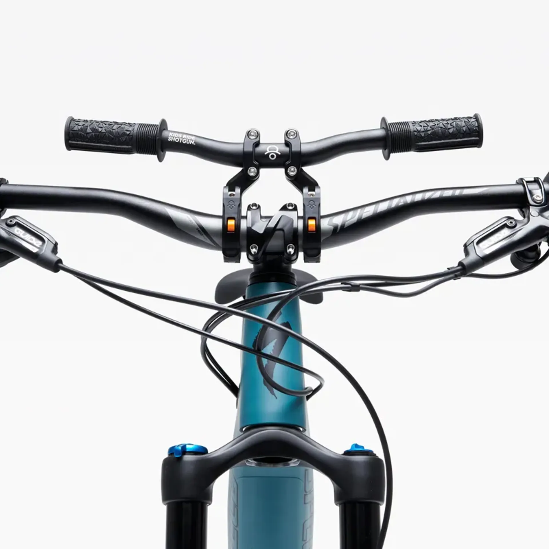 The seat is designed for children 18 months to 5 years, supporting up to 27kg (60lb). It includes adjustable leg length to grow with the child. The Shotgun Pro handlebars are included, providing an up-front experience for the mini mountain biker. These handlebars feature lightning-fast quick-release fitting and custom 19mm grips, making them the perfect partner for the Shotgun Pro seat.