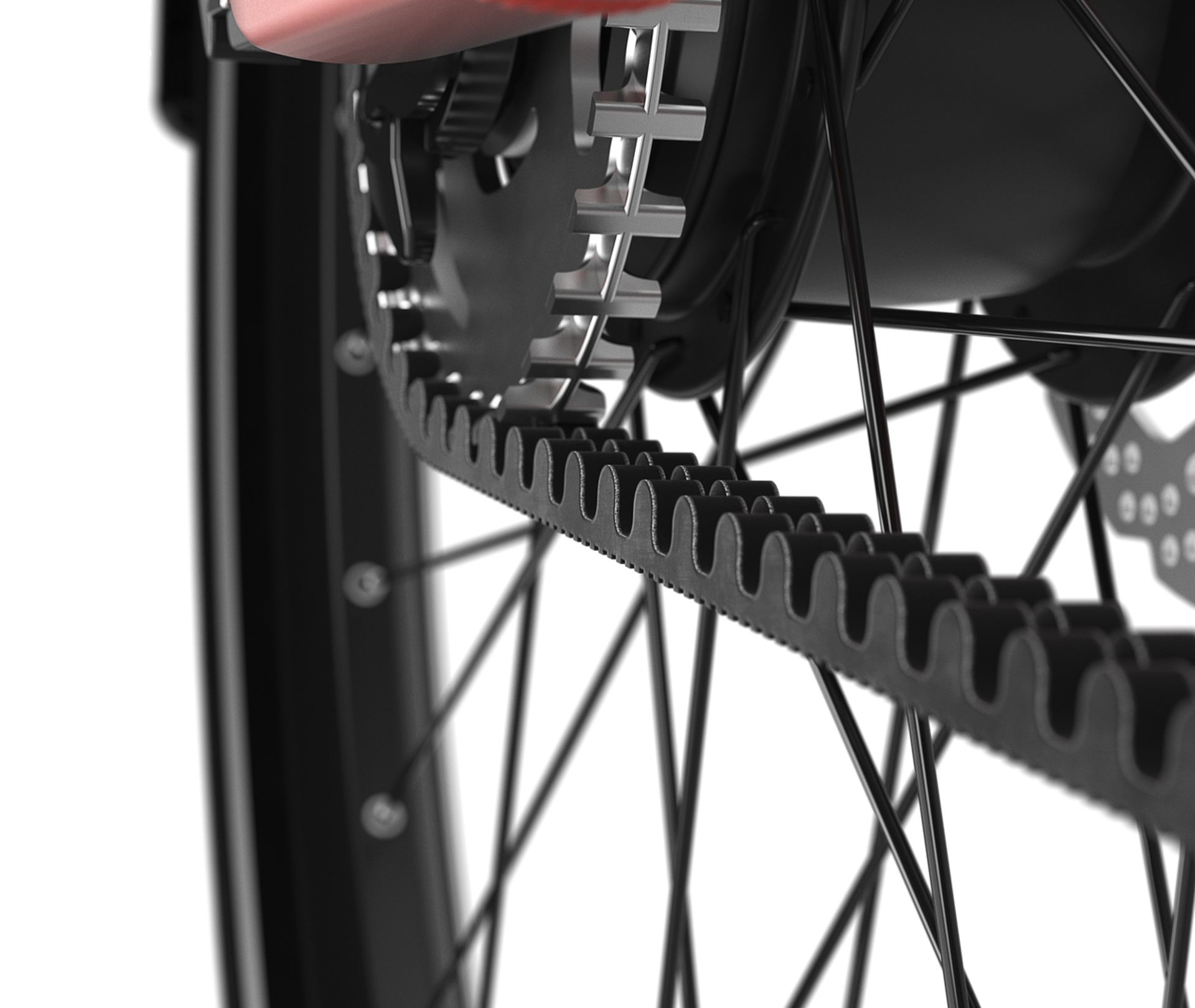 The robust Gates belt is low-maintenance. Unlike a chain, you don't need to lubricate a belt, and it lasts 3 to 5 times longer. The belt is also silent as a mouse and matches the sporty design of the Ultimate.