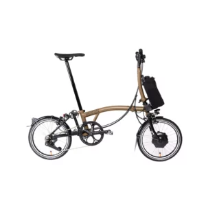 As we mentioned above, Brompton folding e bikes are the most ingenious folding bikes due to their easy and secure folding mechanism and design. Once folded (this can be done in 10 seconds by some) the seatpost holds everything together so you can carry the bike easily, unlike most folding bikes that require a bungee cord to hold everything together. Brompton are the city cyclists dream as they can be taken on public transport, stored under a desk at work and take up little space at home or in a flat. This makes Brompton folding Electric bikes a great choice for those that want assistance or live in hilly cities. The battery is easily removed and has a handy carry strap to transport is almost as straightforward as the non-electric Brompton. Here are some of the top Brompton folding electric bikes but we sell a massive range here.